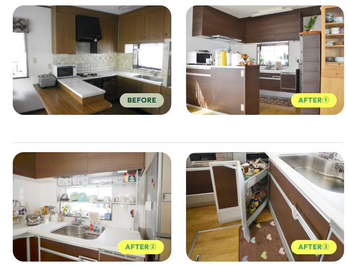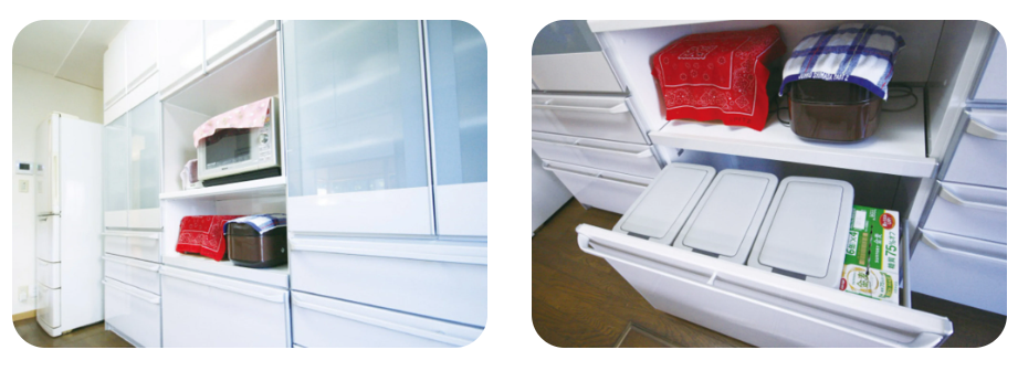 お客様の声: 「今まで使えていなかった場所がすべて効果的に使える収納スペースになり、キッチンまわりがスッキリしました。」