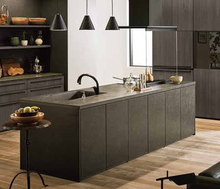 セラミック: 非常に硬く、熱した鍋を直接置いても、包丁を直接使っても傷がつきにくいハイグレード素材。高級感のあるキッチンに仕上がります。