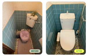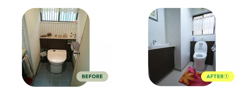 | 解決策 | 収納一体型トイレへの交換 + 壁紙クロスの全面張り替え。 |