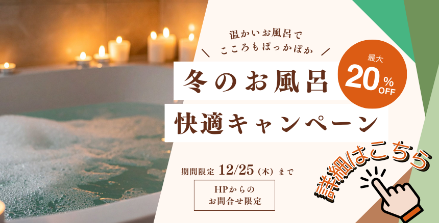 この季節を少しでも暖かく快適にお過ごしいただきたいという思いから、1ヶ月限定「お風呂フェア」を開催いたします!