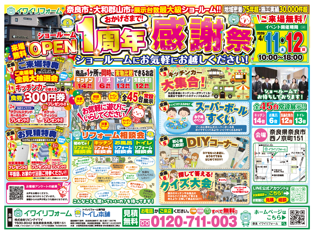 このたび、イワイリフォーム西ノ京ショールームは、おかげさまでオープン1周年を迎えることができました。