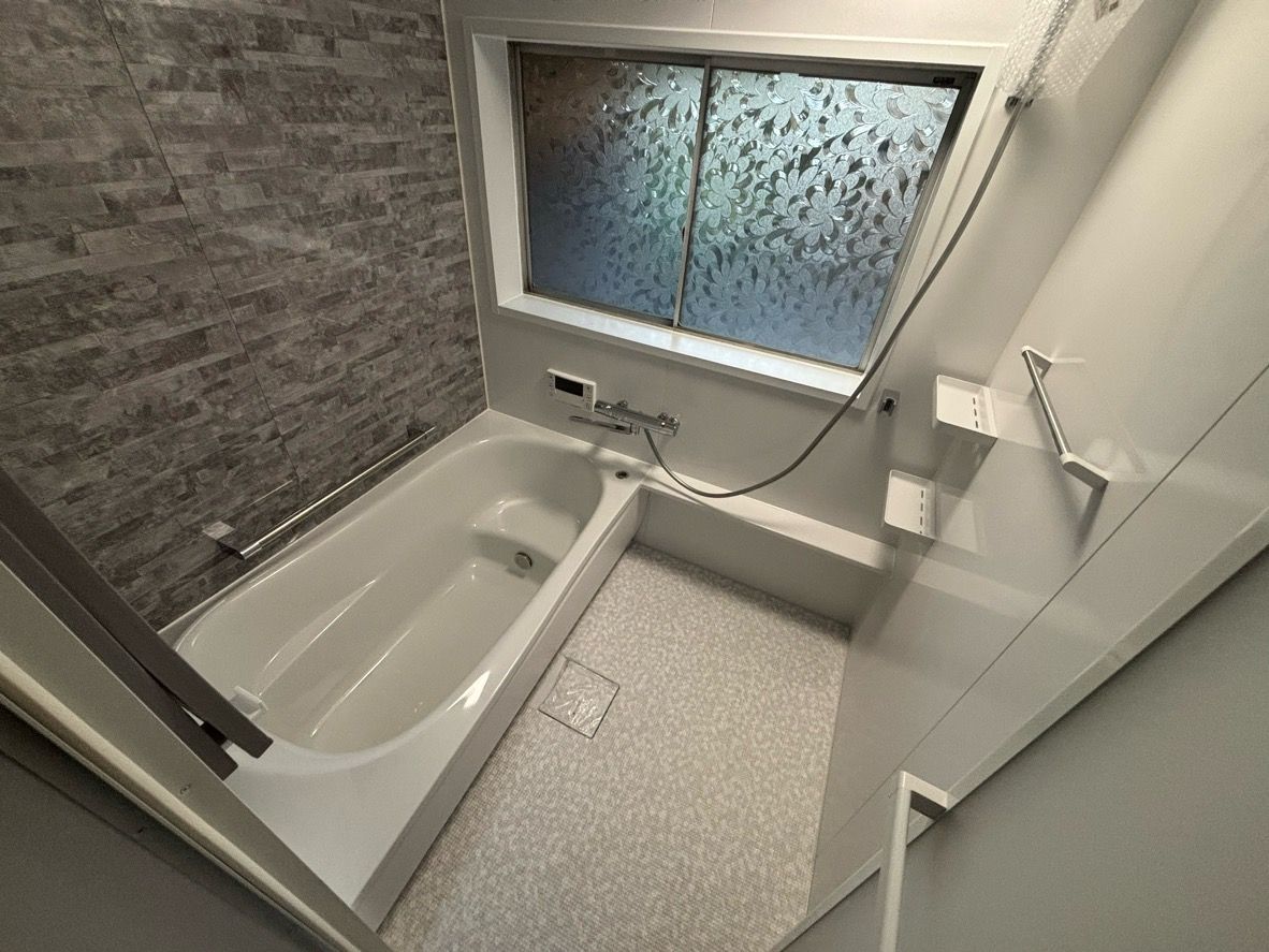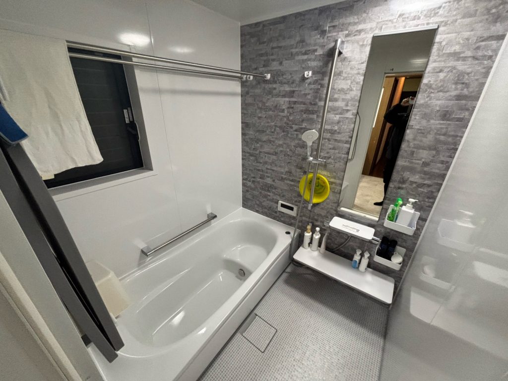 寒さが気になりやすいタイルの浴室から、TOTOのマンションリモデルバスルーム「WYシリーズ」へリフォームいたしました。 採用した「ほっカラリ床」は、畳のような柔らかさと断熱性が特徴で、冬場の一歩目もヒヤッとせず快適です。壁面にはグレーの石目調パネルを選定し、明るく落ち着いた雰囲気に一新されました。また、またぎ込みやすい浴槽や手すりの設置で、将来を見据えた安全性も高まっています。