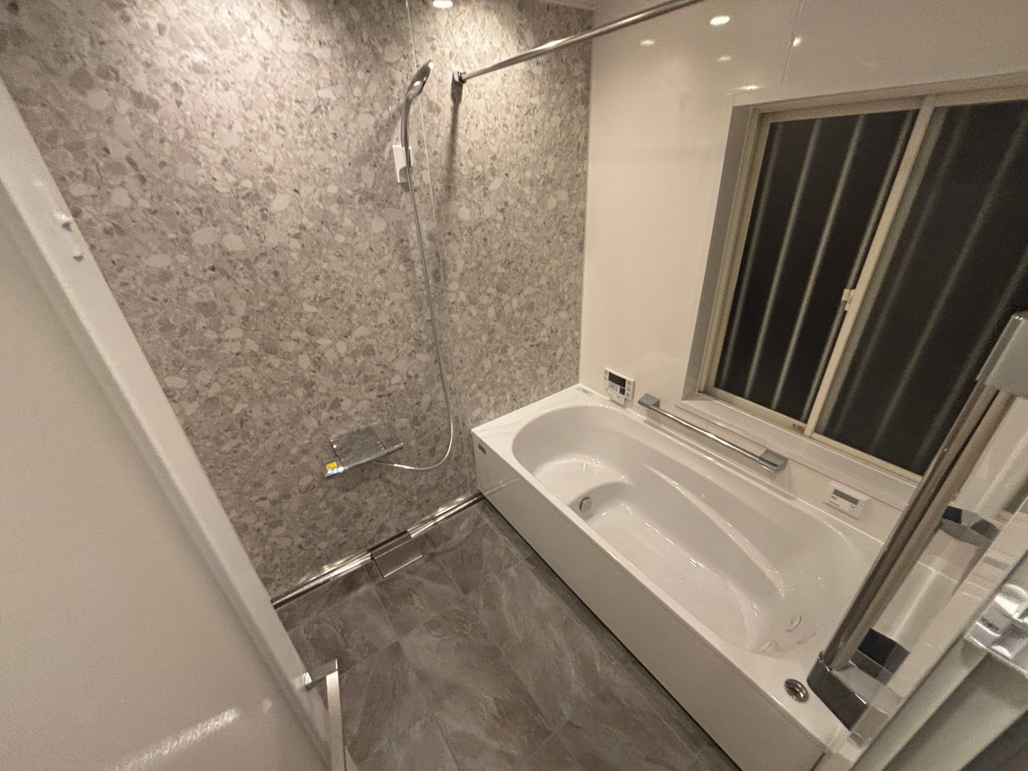 チラシをご覧になってご来店いただき、「タカラスタンダードのグランスパを使いたい」というご希望が最初から明確でした。鉄筋コンクリート構造のお住まいへの施工実績を重視してお選びいただいたこともあり、こちらもその期待に応えるべく、お家の性能を最大限に活かしたプランづくりにこだわりました。構造上、解体工事に2日間を要するなど職人にとっても負荷の大きい現場でしたが、その後の工程をできる限りスピーディに進め、約5日で完工しています。タカラスタンダードの特殊寸法対応により、浴室にぴったりのサイズで仕上げることができました。鉄筋コンクリートのリフォームでお悩みの方も、ぜひご相談ください。